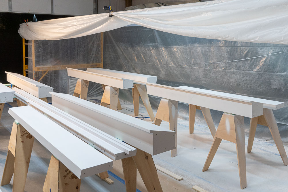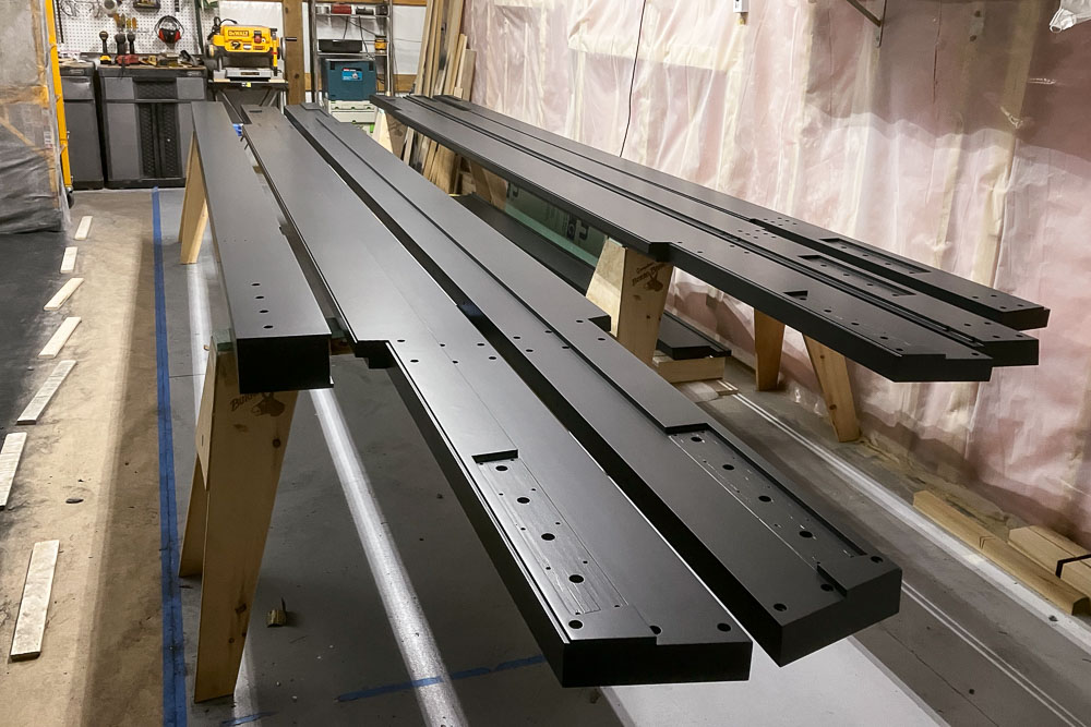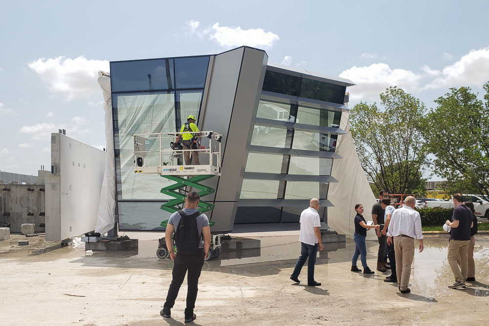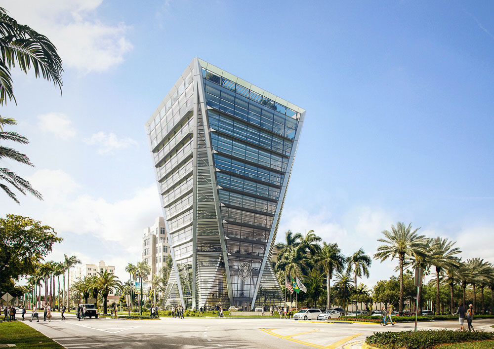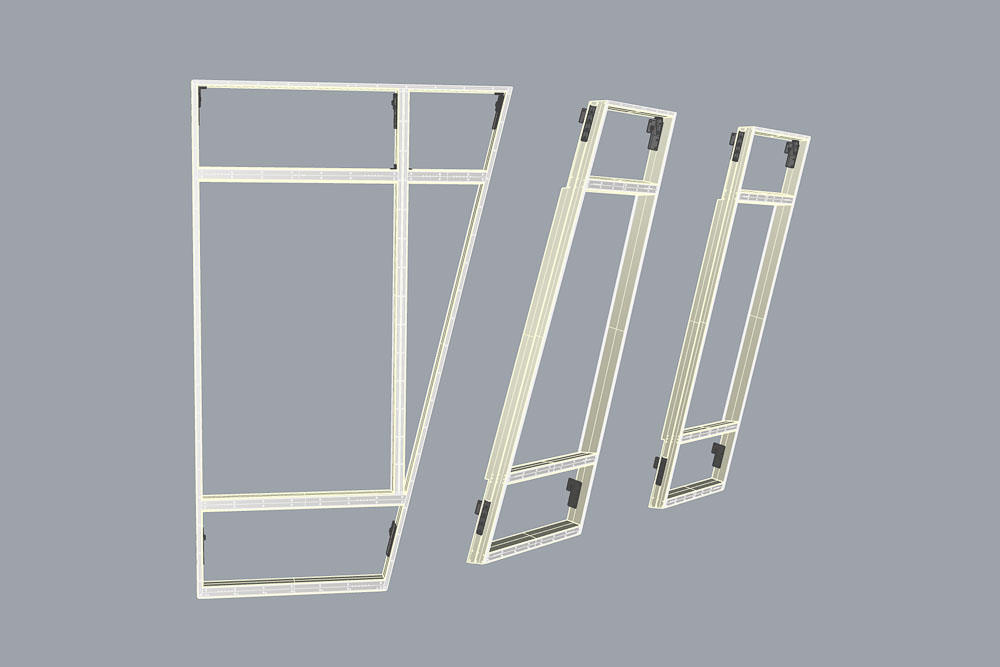 A 1:1 scale curtainwall visual mockup for Safra National Bank in Miami Florida. A 12-story inverted pyramid office tower designed by Foster + Partners. Scope included a hardwood timber frame, inset anodized alumnium components for silicone attachment of glazing IGU's and steel structure components to lift, position and hold for final assembly.
