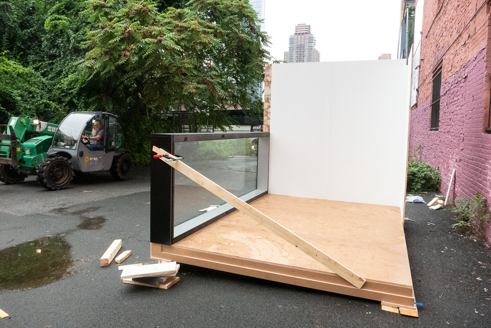 A 1:1 scale visual mockup for testing glazing and exterior cladding geometries, for a mixed use 985’ high rise, being built at the Hudson Yards development on the west side of Manhattan. The mockup was designed as a kit of parts, to be mostly fabricated and finished off site, in a controlled environment for quick installation.